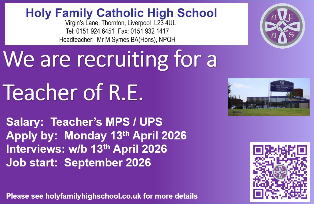 The Sixth Form Centre at Holy Family includes a large common room and a study room set aside for private study. Lessons are taught in the subject areas around the school.